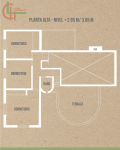 Ya en el interior se despliega el living comedor en doble altura con cocina integrada, al que también se accede desde la galería semicubierta ubicada en uno de los laterales de la casa. Junto al acceso de servicio, hay un baño y una escalera que desciende a un salón de usos múltiples semienterrado iluminado con luz natural.