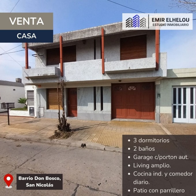 Se vende casa de 3 dormitorios ubicada en Barrio Don Bosco, San Nicolás.