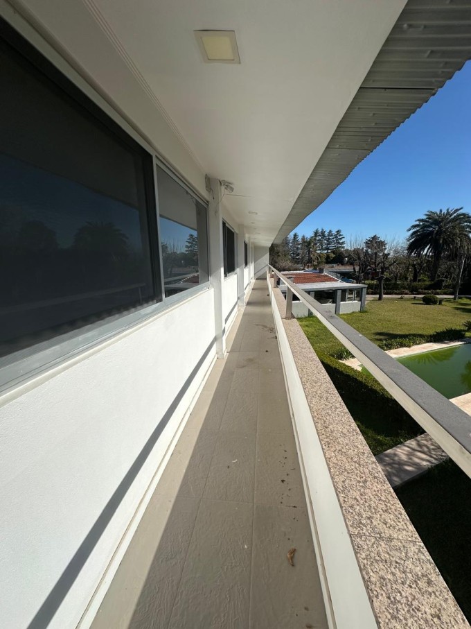 En planta alta dispone de cuatro dormitorios, cada uno con baño privado, aberturas de aluminio línea Módena, instalaciones eléctricas independientes, pisos tipo parquet brasileño, cielorrasos de madera lustrada, termotanque solar de 200 litros, termotanque a gas y equipos de aire acondicionado frío/calor en funcionamiento.