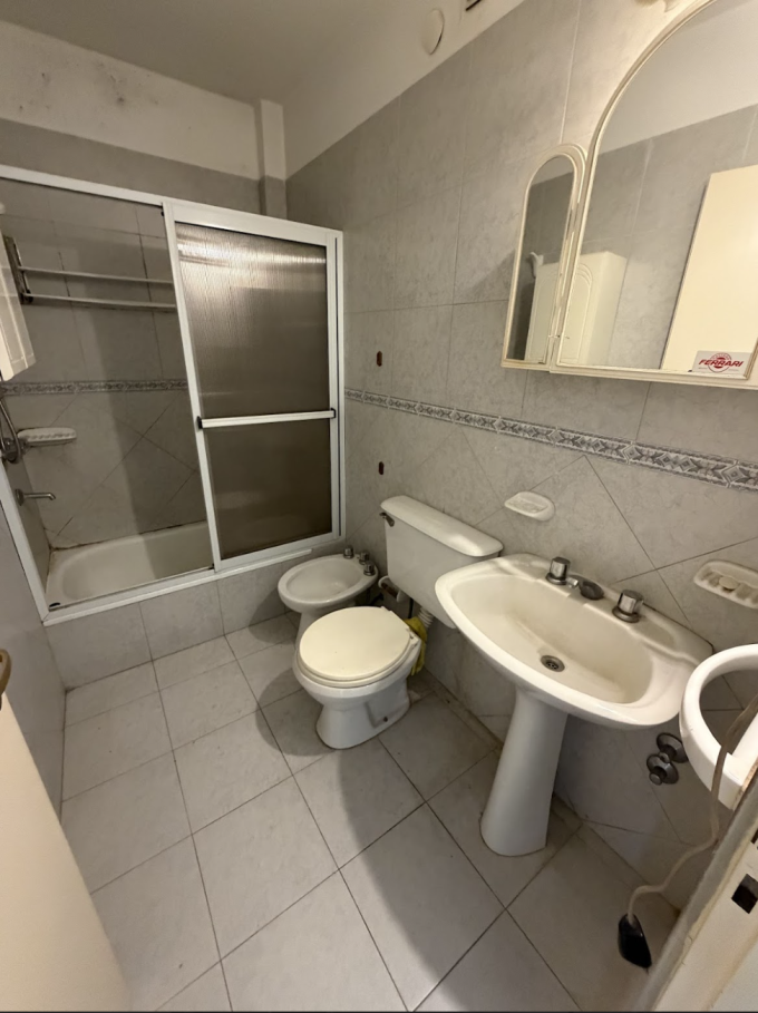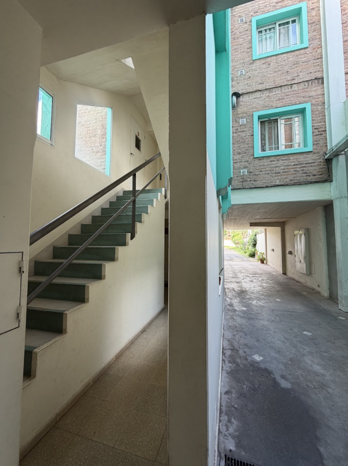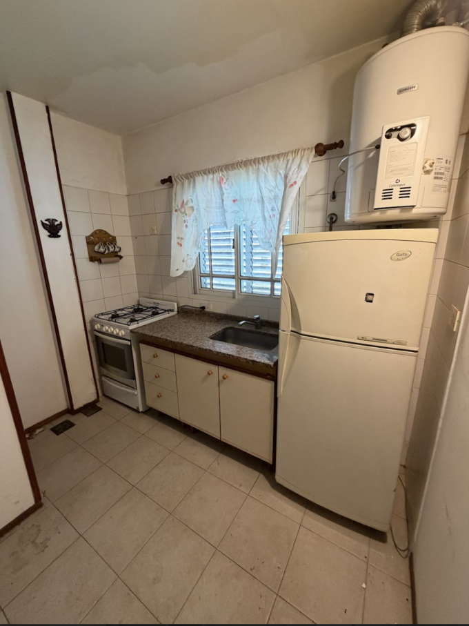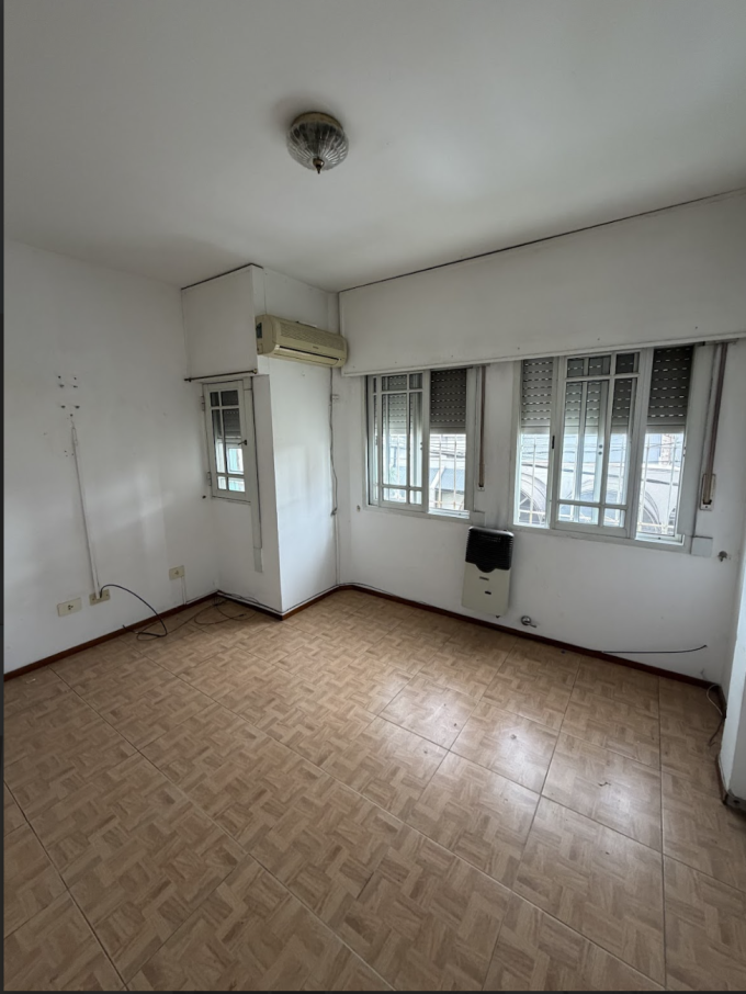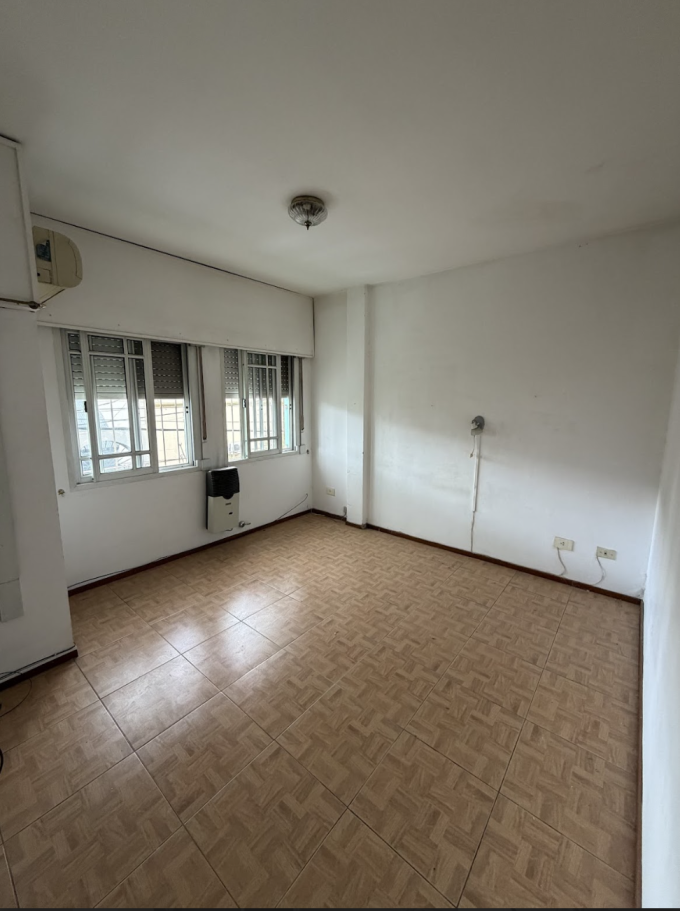 Departamento en primer piso al frente, muy luminoso y bien ubicado. Cocina integrada, baño completo, dormitorio con placard y cochera semi cubierta. Superficie total 59,75 m².